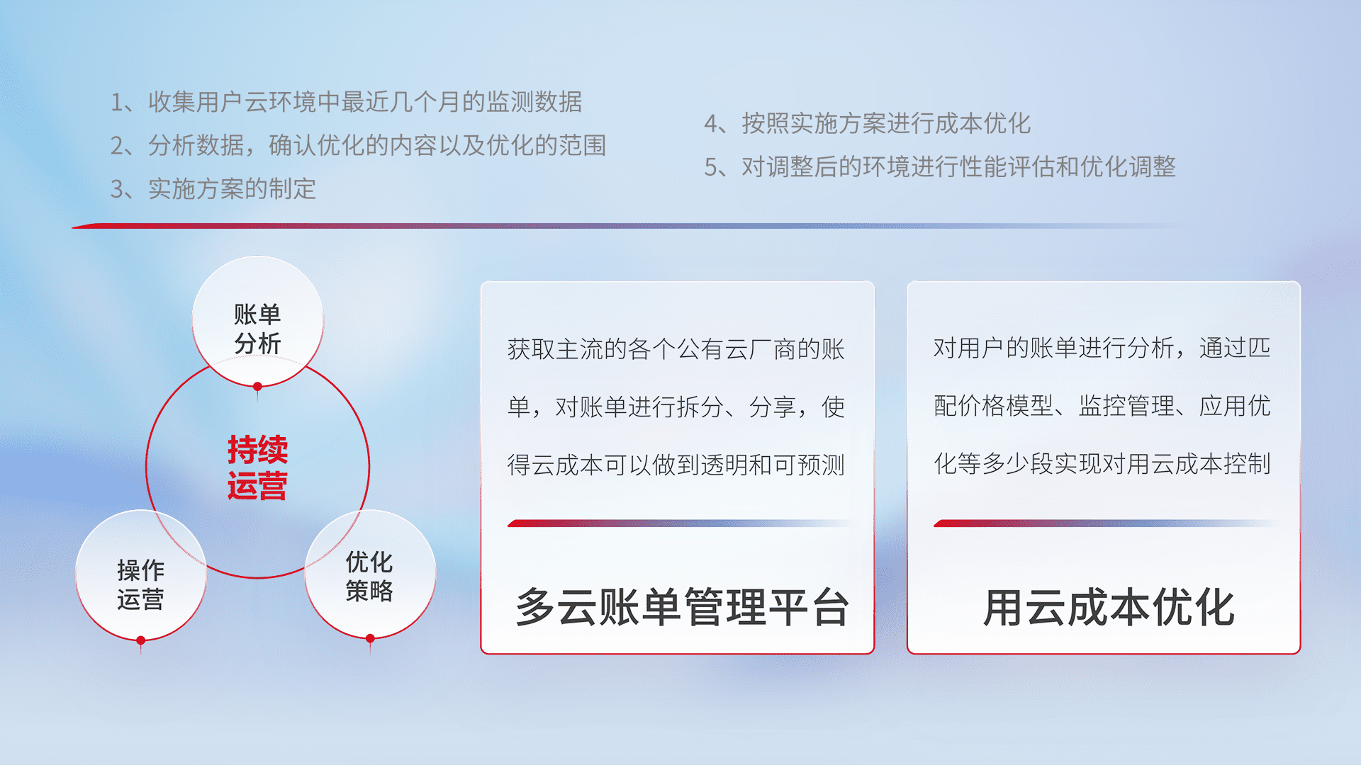 监控业务系统资源开销,,对资源的消耗精确计量,,,实现费用的透明化管理,,,不断提升资源使用率,,,,调整资源购买方式,,,降低资源费用成本,,用云成本可预测、、用云费用可优化,,云资源配额有据可依。。